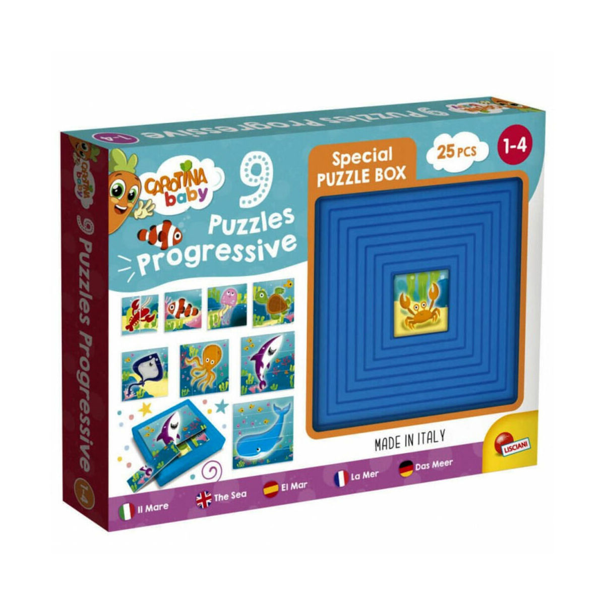 Μέσω αυτού του πρωτότυπου παιχνιδιού, το παιδί σας μπορεί να διασκεδάσει, φτιάχνοντας τα 9 προοδευτικά παζλ θαλάσσιων ζώων, μέσα στη βάση διόρθωσης, τοποθετώντας τα ένα μέσα στο άλλο από το μικρότερο στο μεγαλύτερο!
