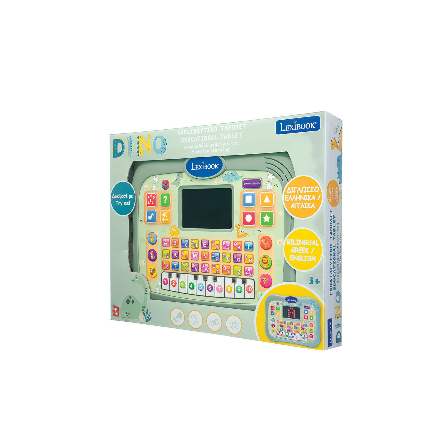 Το tablet “μιλάει” σε Ελληνικά και Αγγλικά, προσφέροντας ένα ολοκληρωμένο περιβάλλον εκπαίδευσης και ψυχαγωγίας. Με κάθε πάτημα, ο μικρός εξερευνητής μαθαίνει νέες λέξεις, ακούει ήχους δεινοσαύρων, παίζει κουίζ γνώσεων και διασκεδάζει με μουσικές δραστηριότητες.