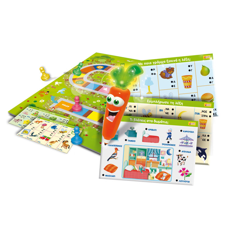 Το ηλεκτρονικό στυλό Καροτίνα φωτίζει και παίζει χαρούμενους ήχους όταν το παιδί δίνει σωστές απαντήσεις, ενθαρρύνοντάς το με θετικό και διασκεδαστικό τρόπο.